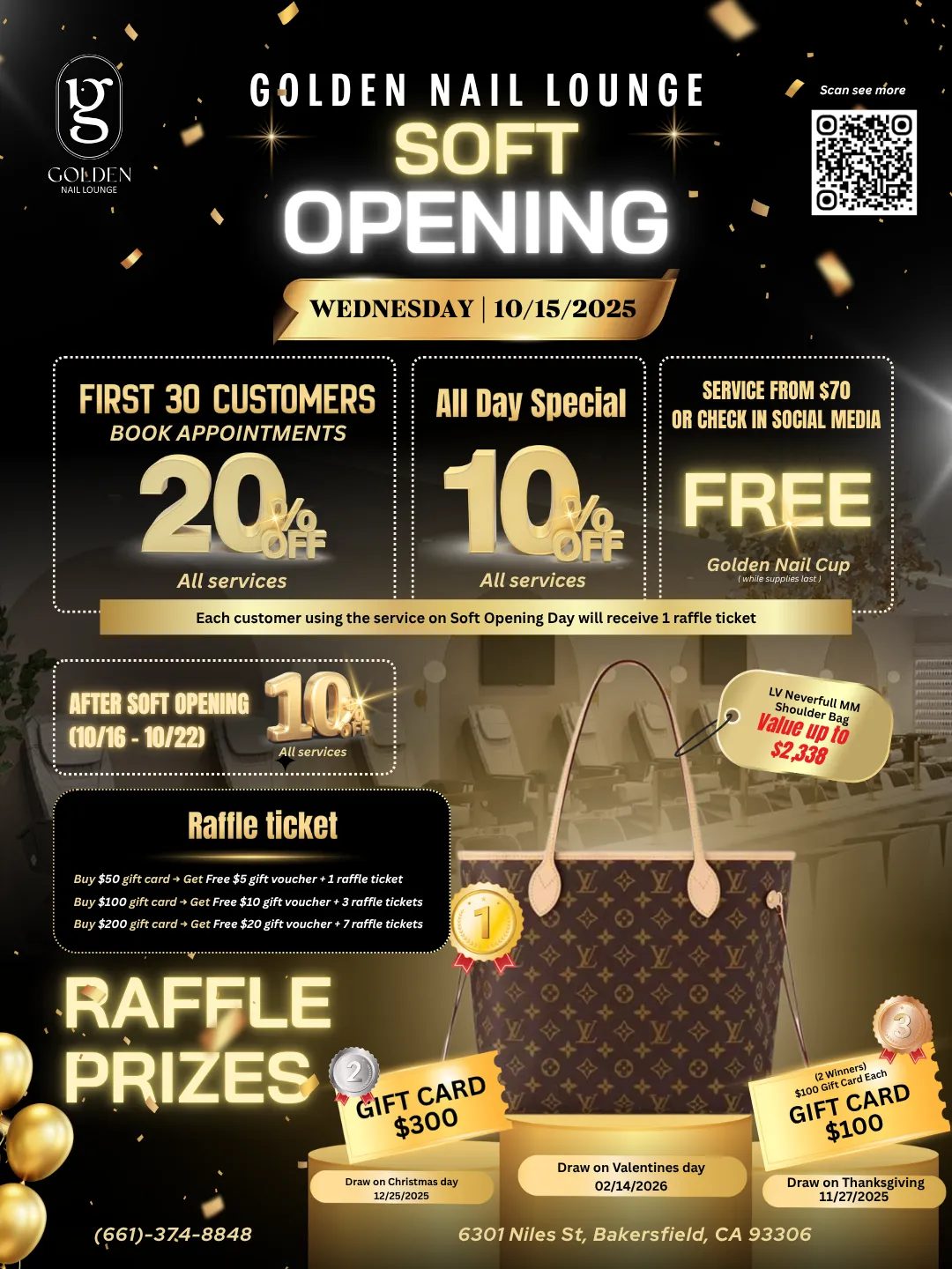 π FREE Golden Nail Cup with service from $70 or check-in on social media (while supplies last)